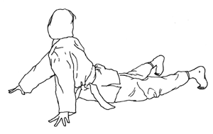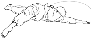 ´©¿ö¼ ¾ç¼Õ, ¾ç¹ßÀ» ¸ðµÎ ¹ú¸®°í ¿Þ¹ßÀ» µé¾î¼ ¿À¸¥¼Õ À§Ä¡¿¡ °¡Á®°¡¸ç, ¸öÅëÀº ÁÂÃøÀ¸·Î ư´Ù.